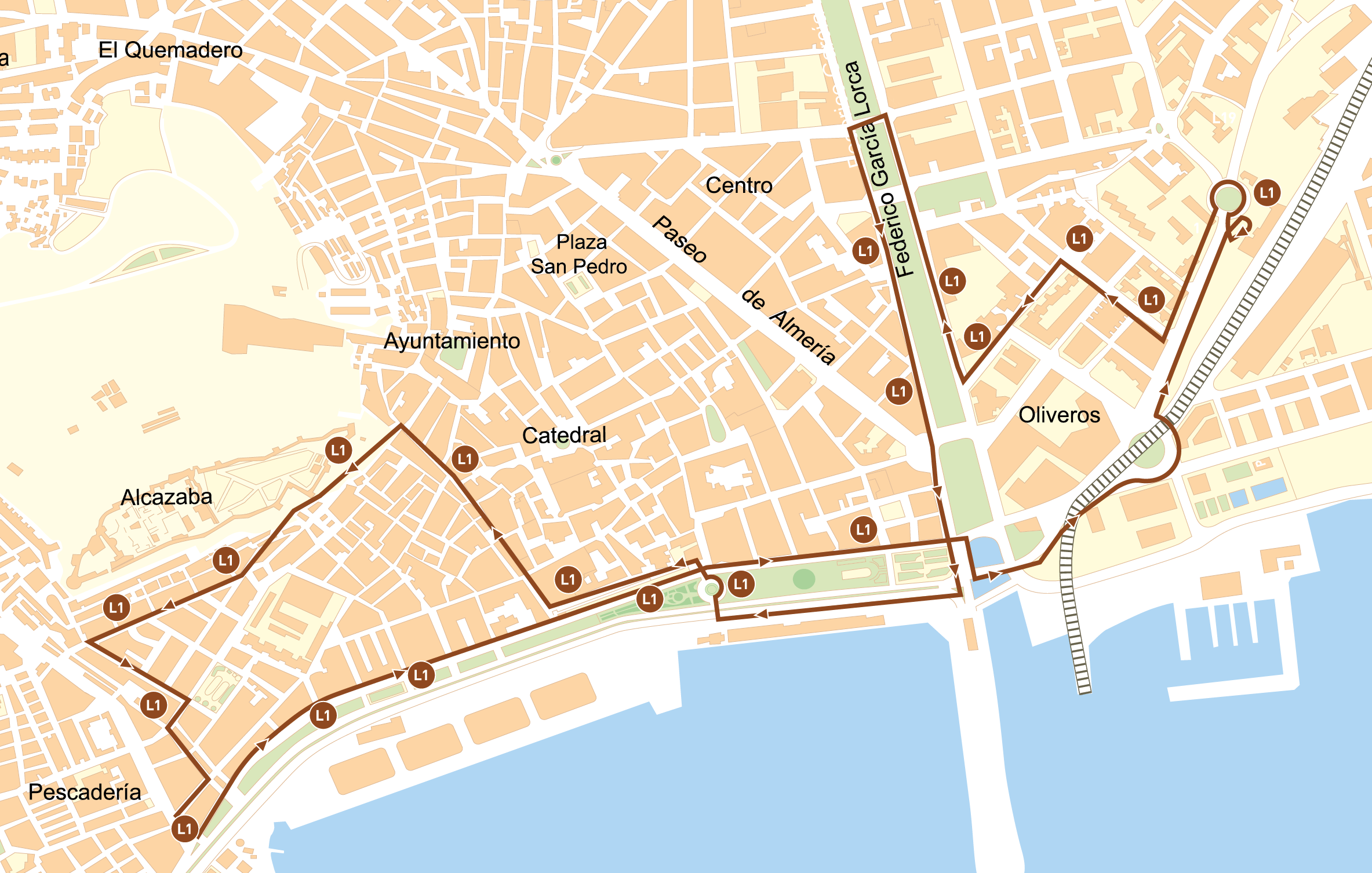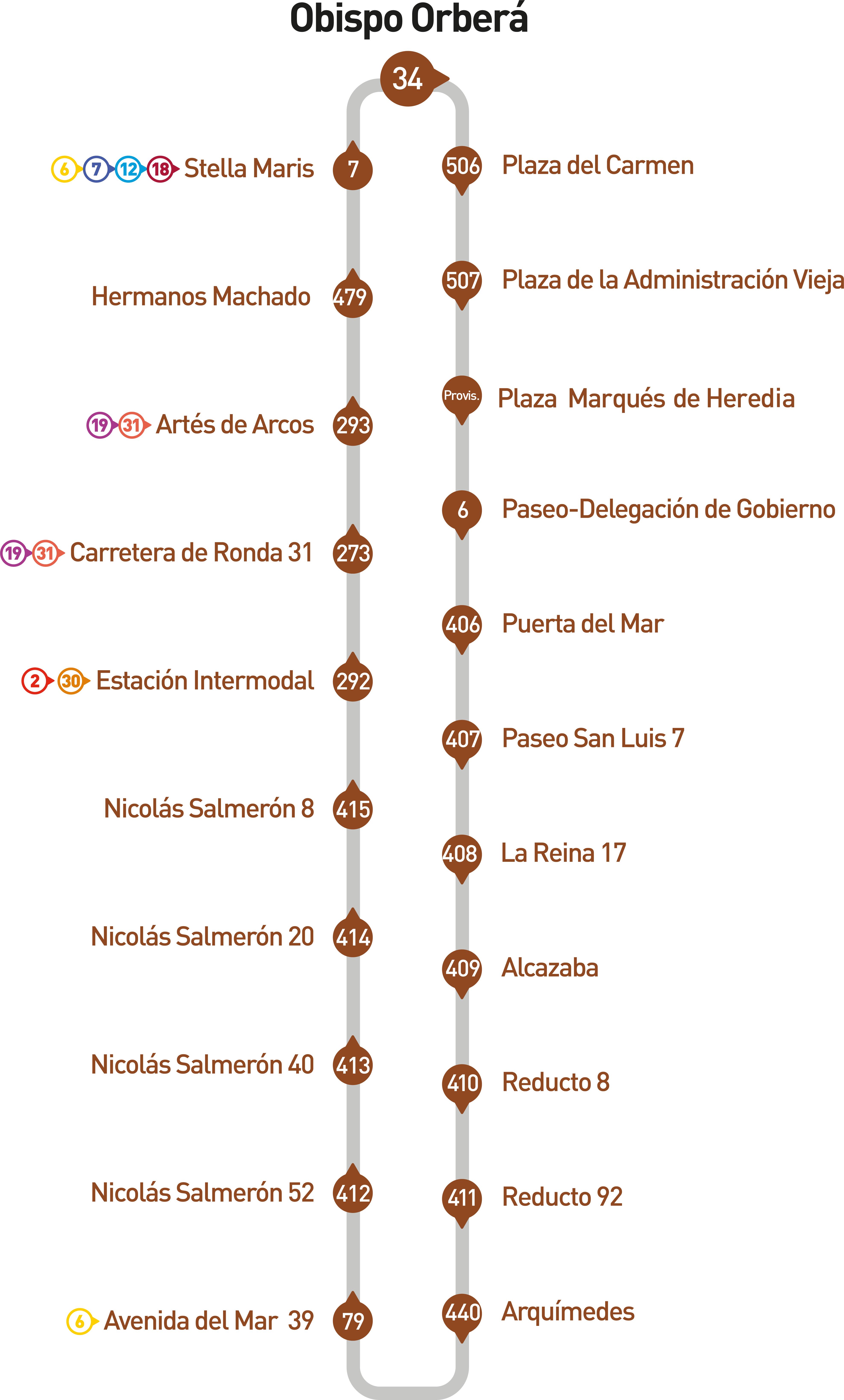 • Los servicios de las 14:52 - 22:32 finalizarán su trayecto en: Parada 34 → Obispo Orberá