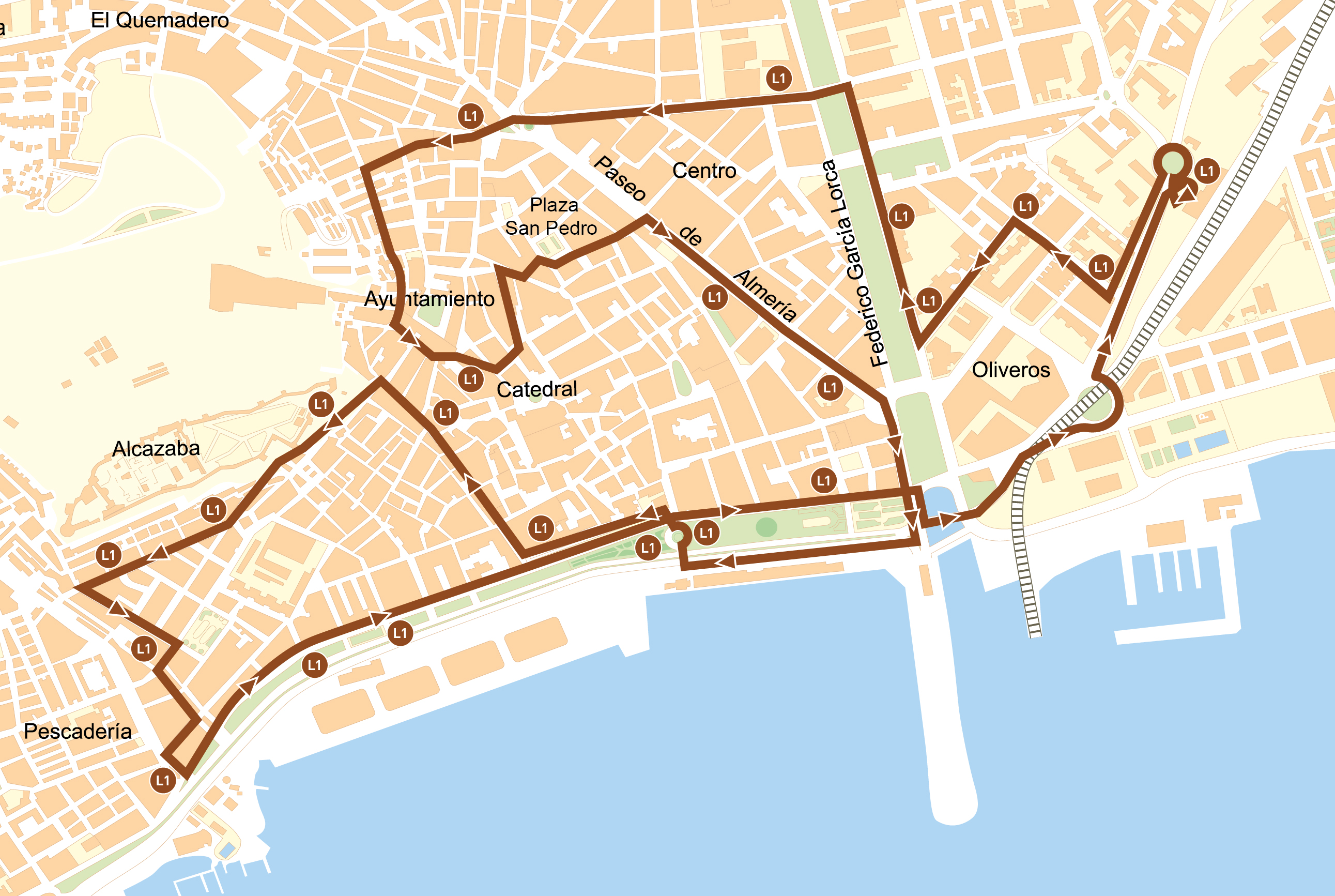 • Los servicios de las 14:52 - 22:32 finalizarán su trayecto en: Parada 34 → Obispo Orberá