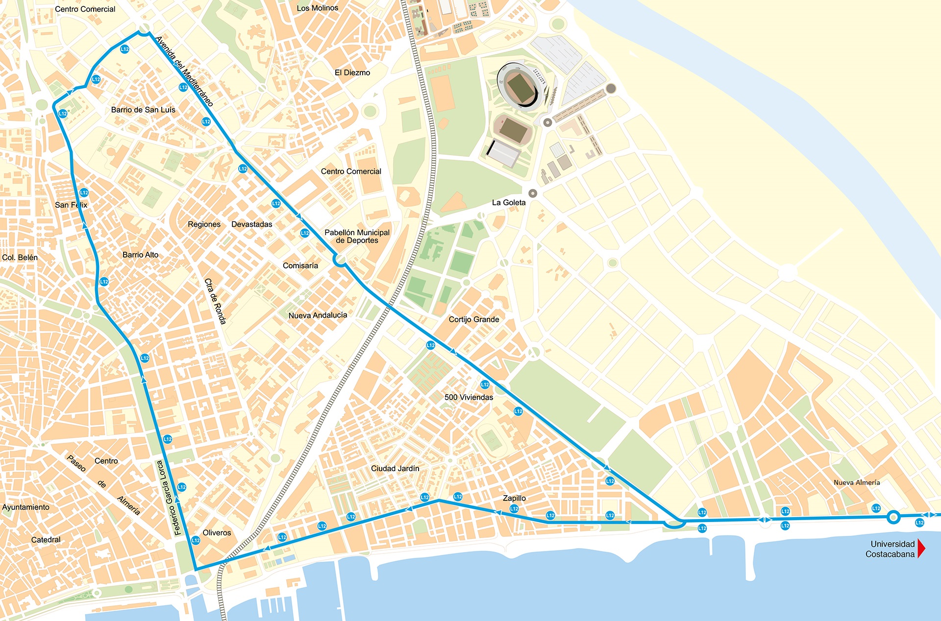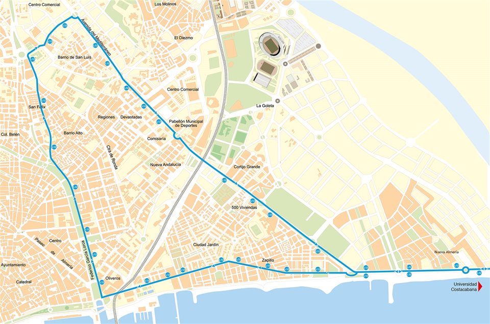 • Todos los servicios finalizarán su trayecto en: Parada 150 → Nueva Almería