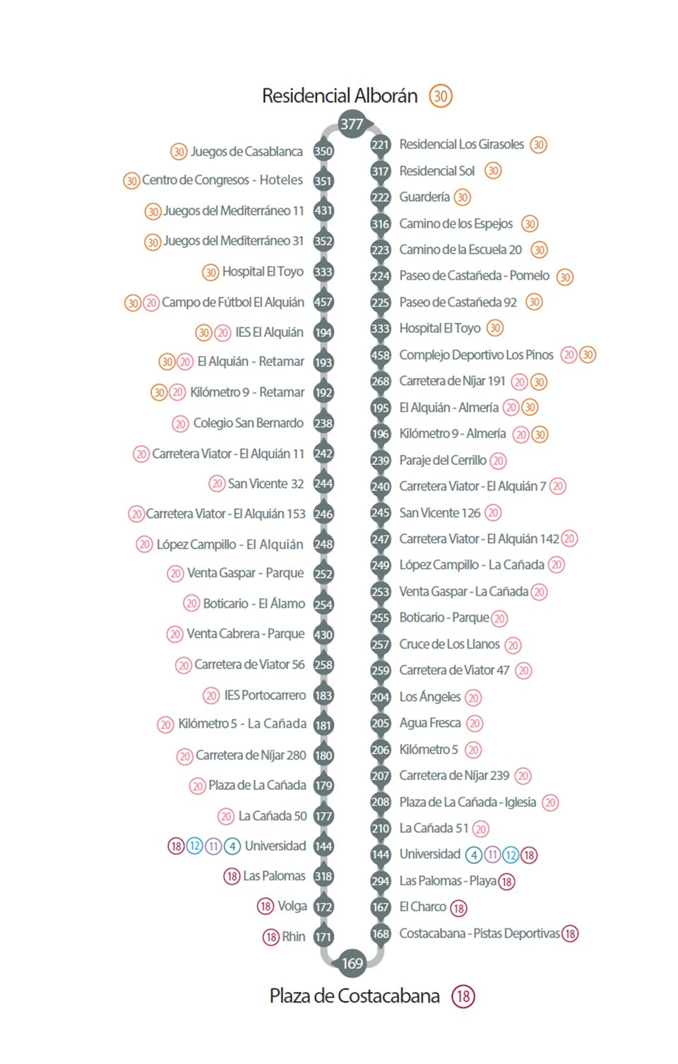• El servicio de las 20:30 finalizarán su trayecto en: Parada 377 → Residencial Alborán