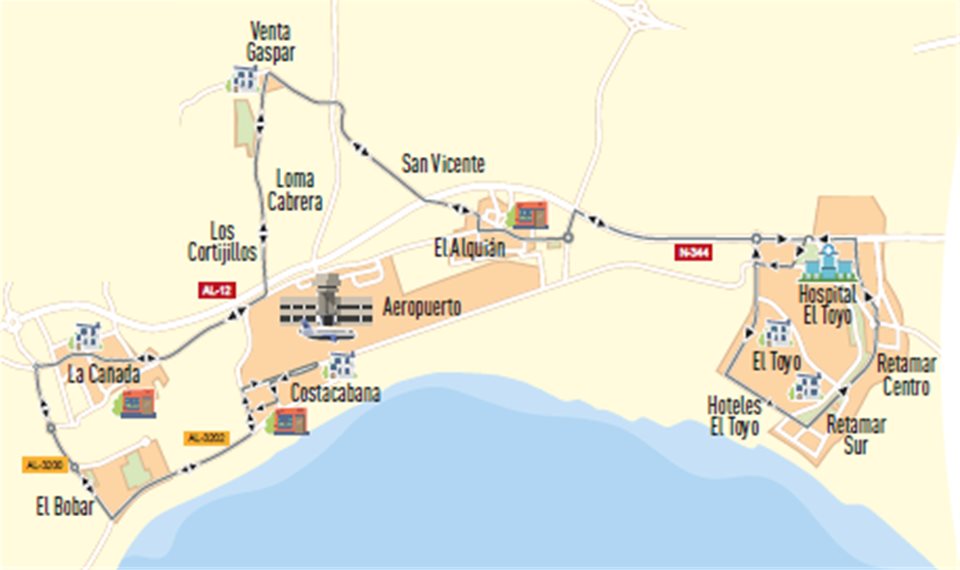 Laborables dirección: Ual - La Cañada - Venta Gaspar - El Alquián - Residencial Alborán