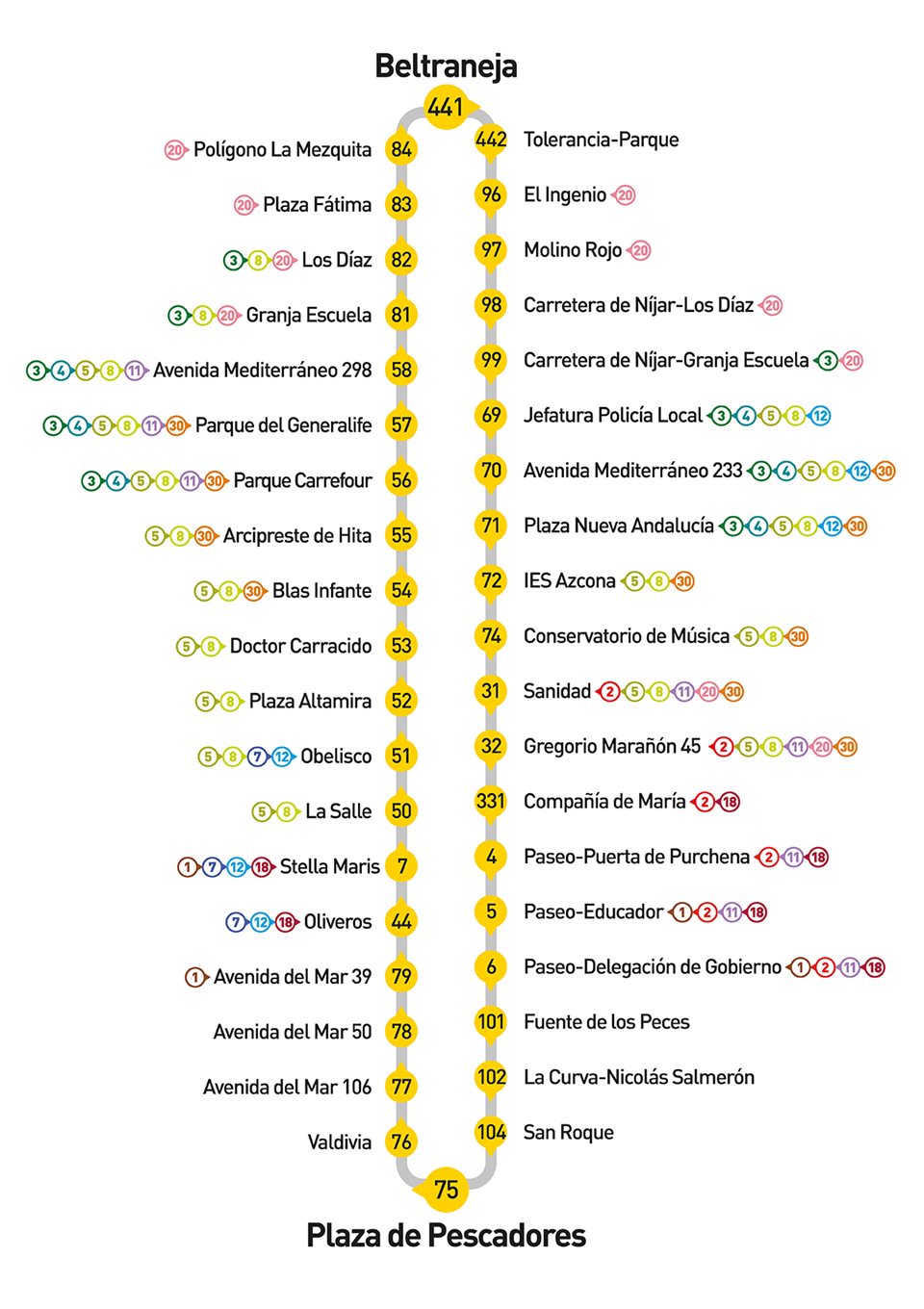 • Los servicios de las 22:00 y 22:20 finalizarán su trayecto en: Parada 50 → La Salle